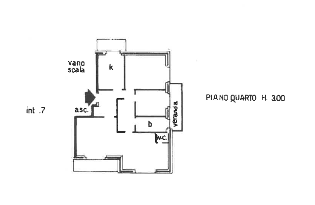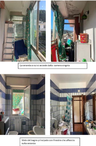 Un terzo balcone, collegato a camera singola e bagno, venne chiuso con serramenti vetrati per ricavare una veranda.