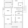 Alloggio al piano terra: ingresso/corridoio, cucina, soggiorno, wc nel sottoscala, tre camere, ripostiglio, disimpegni, locale lavanderia/doccia con scala interna che conduce alla cantina interrata, ulteriore scala interna per il piano primo, garage sul lato nord e portico sul lato sud.