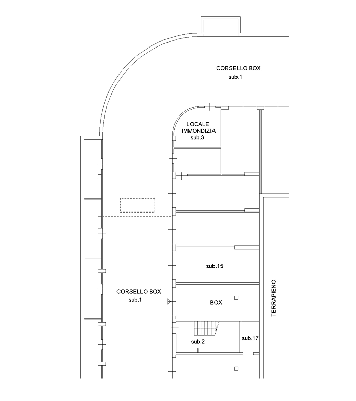 Il bene gode di una superficie di 24,00 mq ed è ubicato al piano seminterrato di un edificio residenziale.