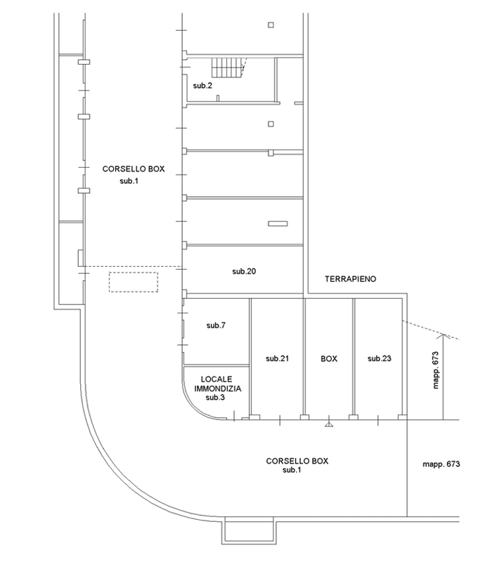 L'autorimessa gode di una superficie di 24,00 mq ed è ubicata al piano seminterrato di un edificio residenziale.