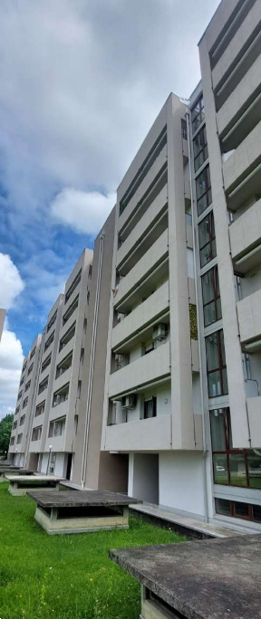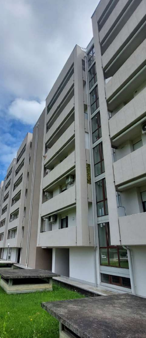 Appartamento posto al sesto piano di un complesso condominiale di circa 107 mq, composto da cucina e soggiorno con poggiolo, tre camere e due bagni, corridoio e ripostiglio, con autorimessa di 13 mq e cantina di 10 mq al piano semi interrato.