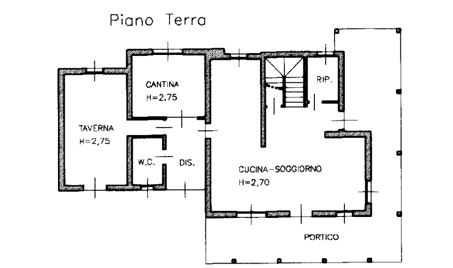 Trattasi di una casa di 10,5 vani composta da parte giorno al piano terra che comprende un'ampia zona giorno (soggiorno, pranzo e cucina), un ripostiglio (adibito a studiolo), dispensa, bagno, cantina e taverna.