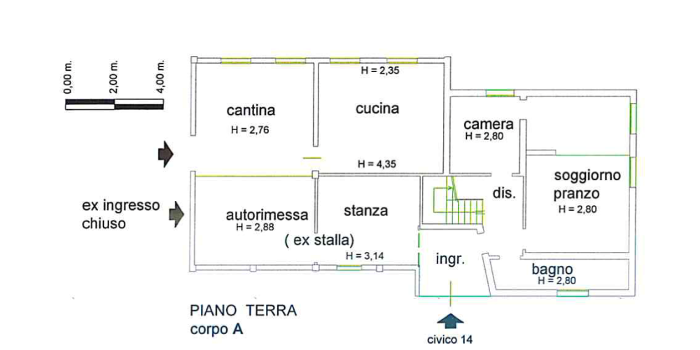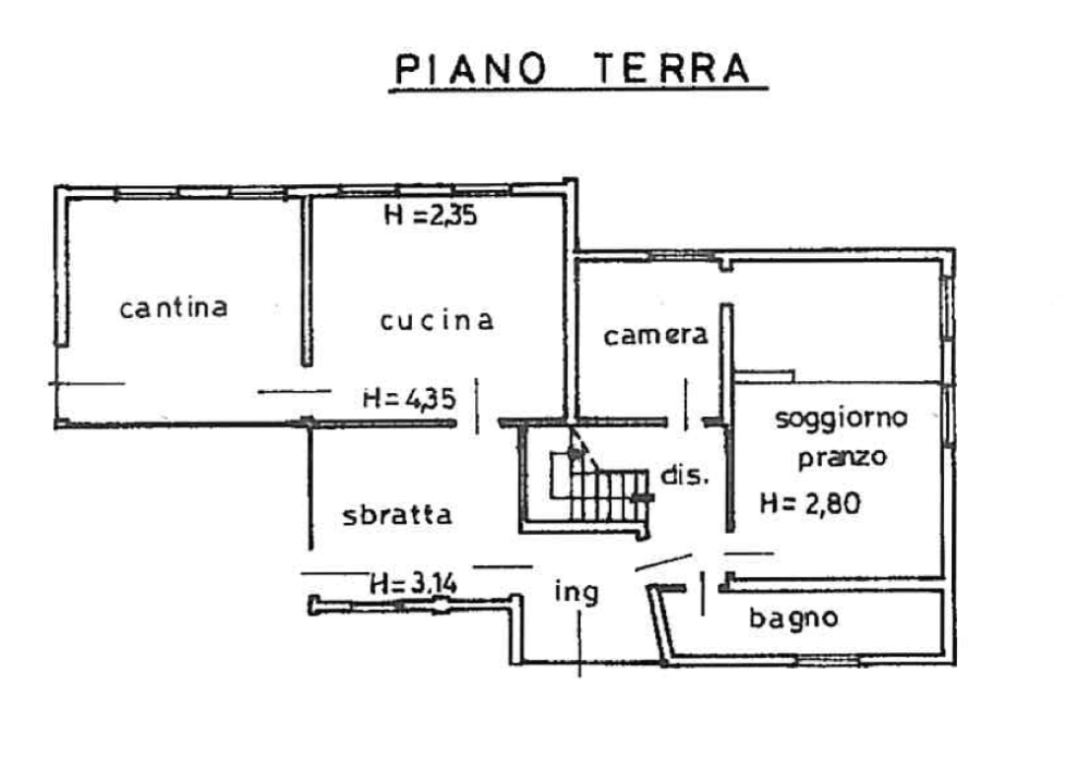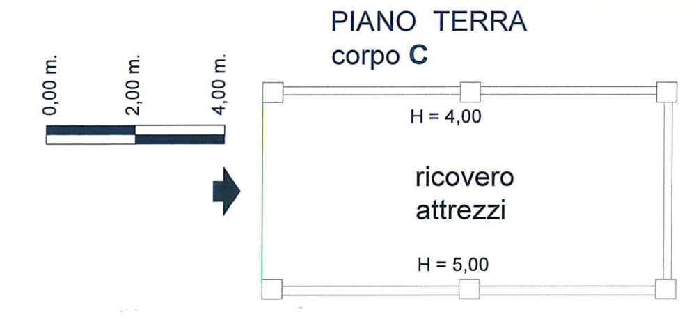 cantina, un bagno, stanza ed autorimessa; al primo livello da tre camere da letto ed un bagno.