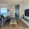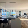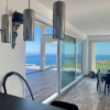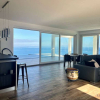 La zona abitativa principale, di circa 90 mq, si articola in un'ampia cucina con penisola integrata al soggiorno, entrambi immersi nella luce naturale grazie alle maestose porte-finestre che si aprono su una veranda panoramica. La camera da letto matrimoniale è anch'essa orientata verso il mare, regalando una continuità visiva che conferisce un senso di pace e armonia. Il bagno completa elegantemente il livello principale, che dispone inoltre di una seconda veranda collocata sull'ingresso, ideale come spazio di accoglienza.