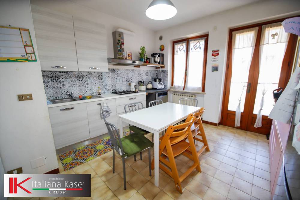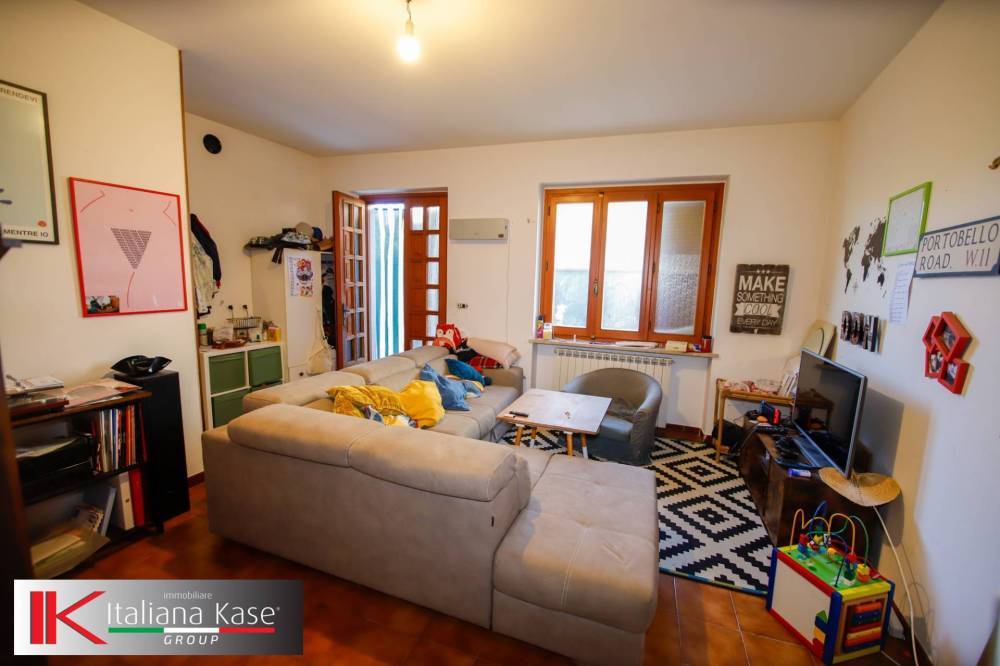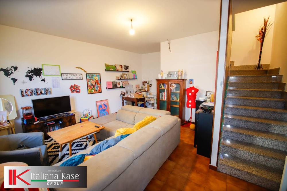 Al piano terra si ha l'ingresso su soggiorno con comodo rispostiglio, tramite scala interna si accede al piano primo dove si trova la cucina abitabile e luminosa, con accesso al balcone e al terrazzo.