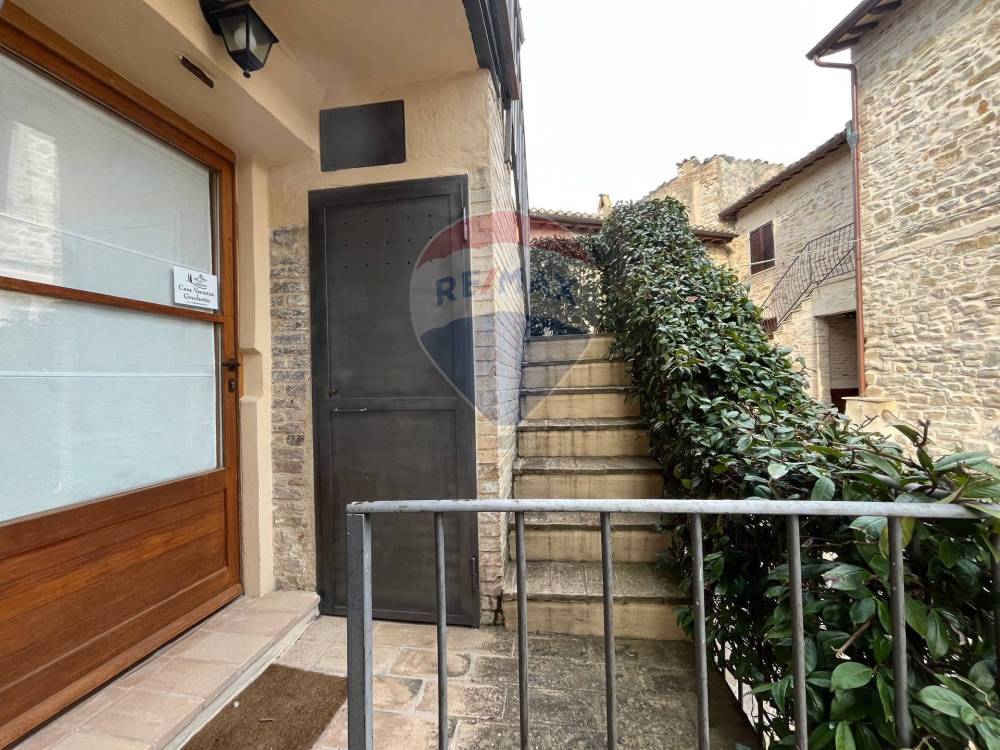 Salendo la scala esterna, si raggiunge il primo piano dove si apre l'appartamento "Sagrantino". Qui troviamo un grazioso terrazzo con vista sulla Piazza che ci conduce al soggiorno con angolo cottura e divano letto, una camera matrimoniale e un bagno finestrato con doccia e attacco per la lavatrice, ideale per accogliere fino a quattro ospiti.