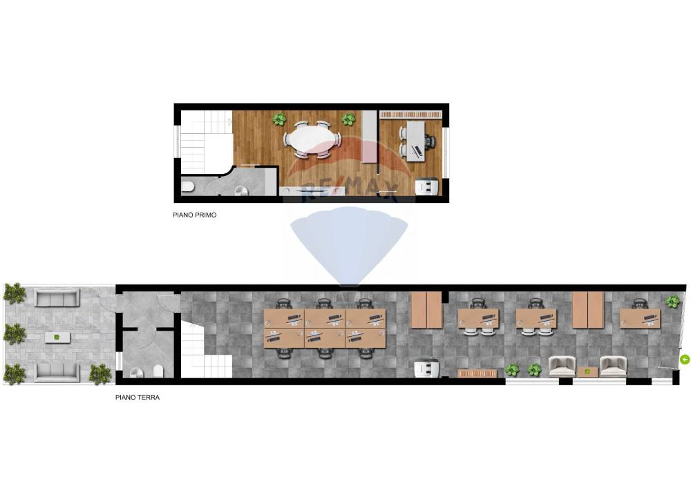 Limmobile si sviluppa su due livelli collegati da scala interna, per una superficie complessiva di circa 150 mq. Al piano terra si trova un ampio spazio open space, disimpegno, bagno finestrato (ristrutturato nel 2017 e conforme anche per persone con disabilità), oltre a una corte esterna di proprietà esclusiva. Al primo piano sono presenti due locali separati utilizzabili come negozio e ufficio, spogliatoio e un secondo bagno, anchesso recentemente ristrutturato.