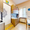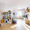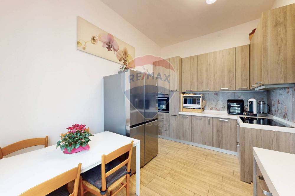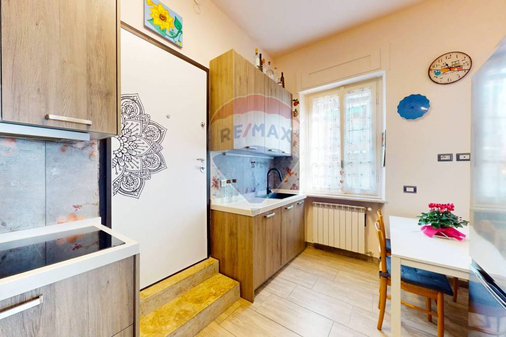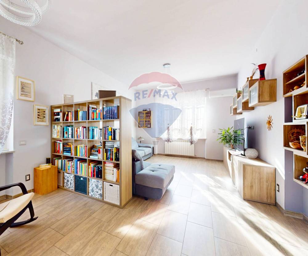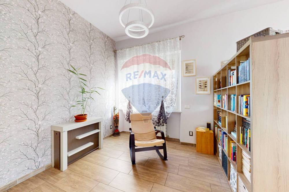Il soggiorno doppio è illuminato da tre grandi finestre (due ad est, una a sud); la cucina adiacente, abitabile, ha un secondo comodo ingresso sul retro.