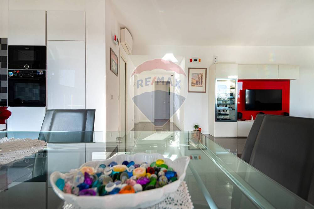 Nella servitissima zona di Pero e precisamente nella frazione di Cerchiarello proponiamo in contesto moderno con tecnologia di ultima generazione ampio e luminosissimo trilocale finemente arredato composto da: ingresso, soggiorno con cucina a vista, due camere corredate da servizi, ripostiglio nonchè terrazzo con vista giardino.
