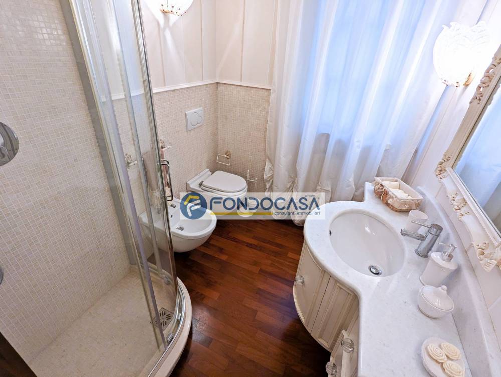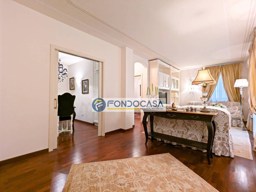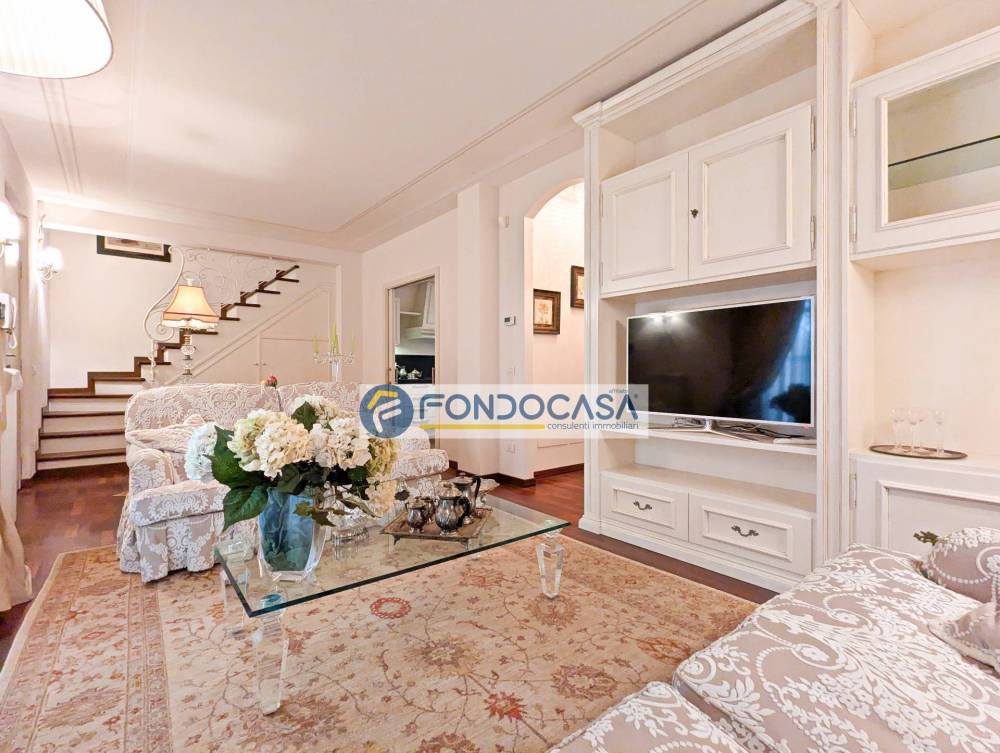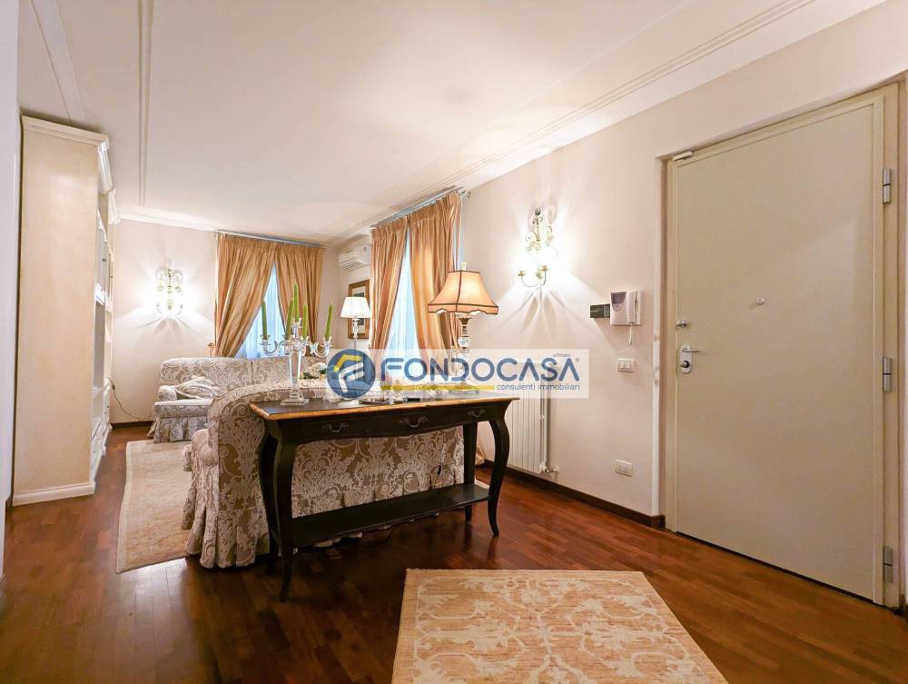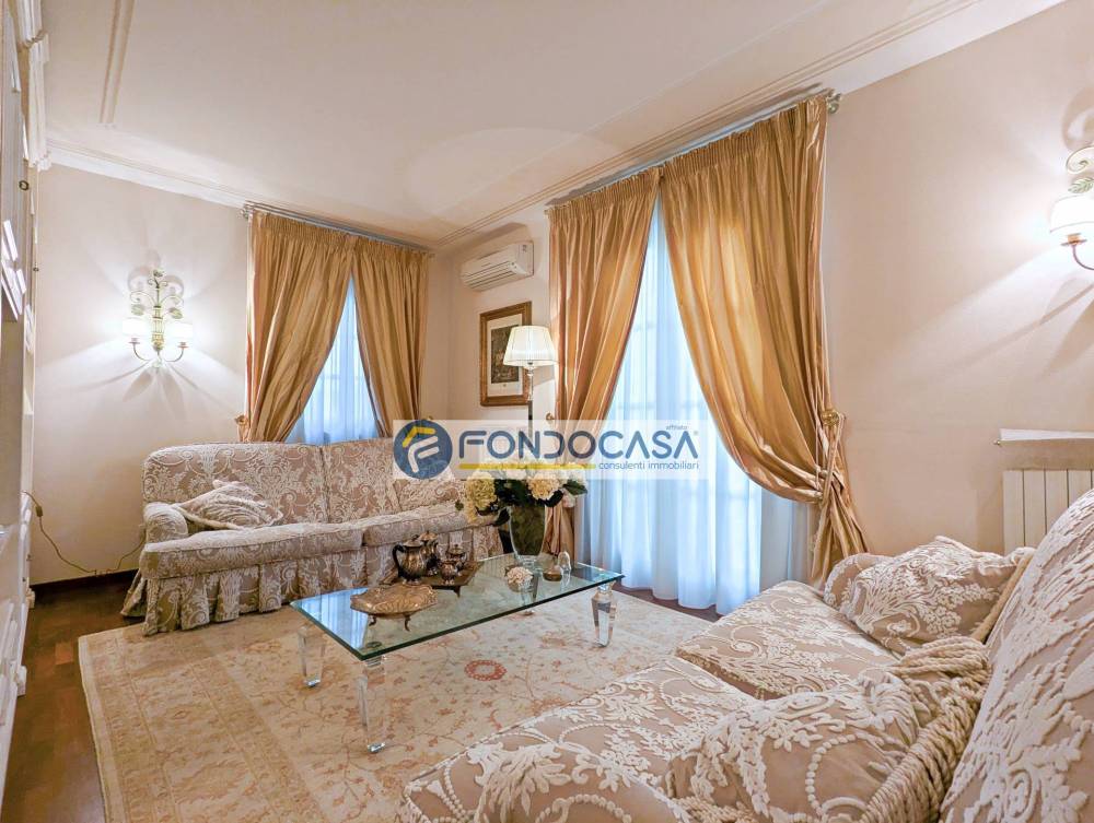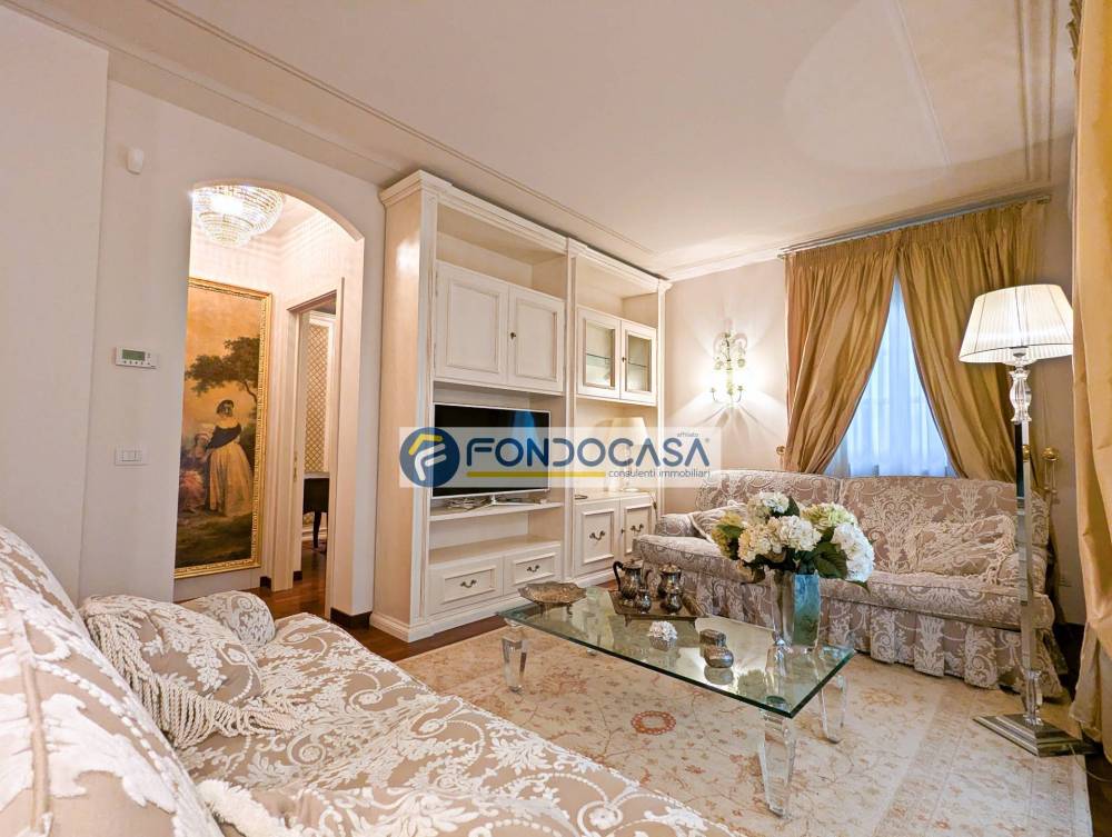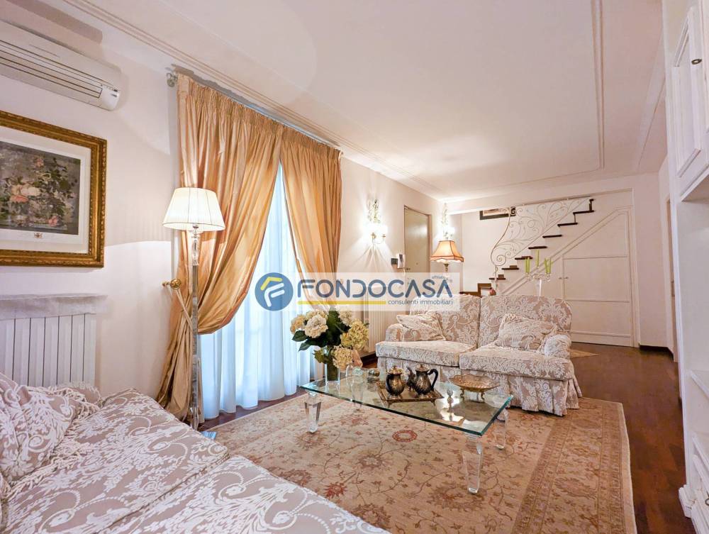 Completano la proprietà un pratico locale lavanderia nel sottoscala, infissi con doppi vetri per un eccellente isolamento termo-acustico e impianto di allarme funzionante. L'appartamento viene proposto completamente arredato con mobilio di qualità, pronto per essere abitato.