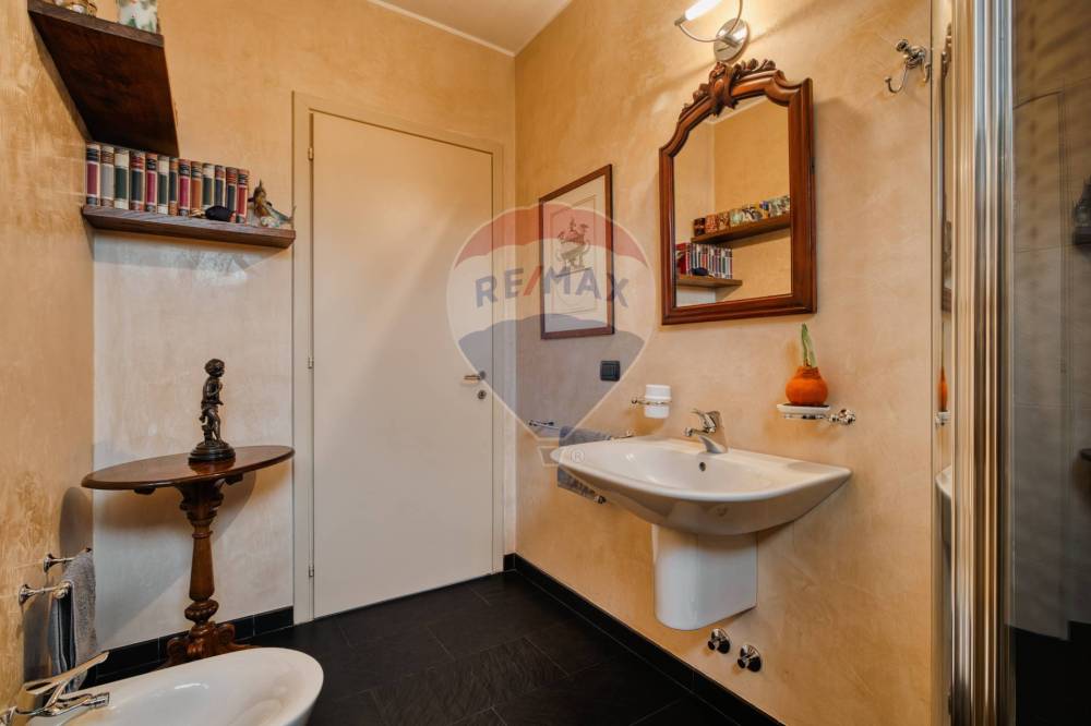 unelegante sala da bagno en suite di oltre 10 mq, con grande piano lavabo, sanitari e ampia doccia;