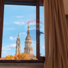 Sul lato opposto il living gode di una suggestiva veduta verso il centro cittadino, con scorcio diretto sulla Cupola Antonelliana di San Gaudenzio.