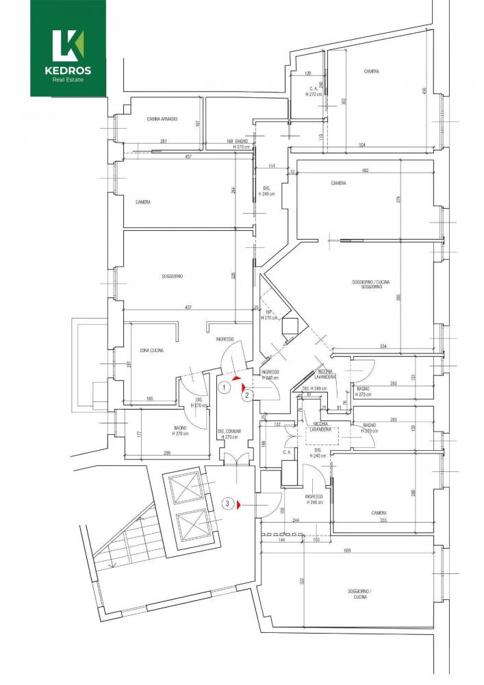 Divisione in tre unità: due trilocali e un comodo bilocale.