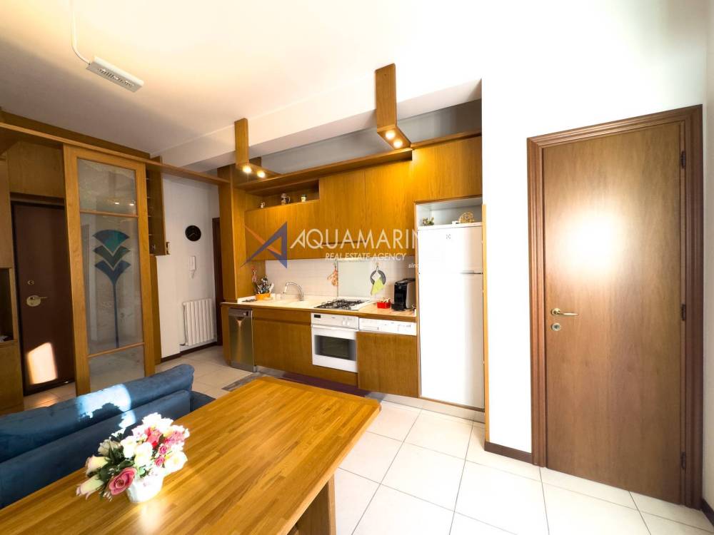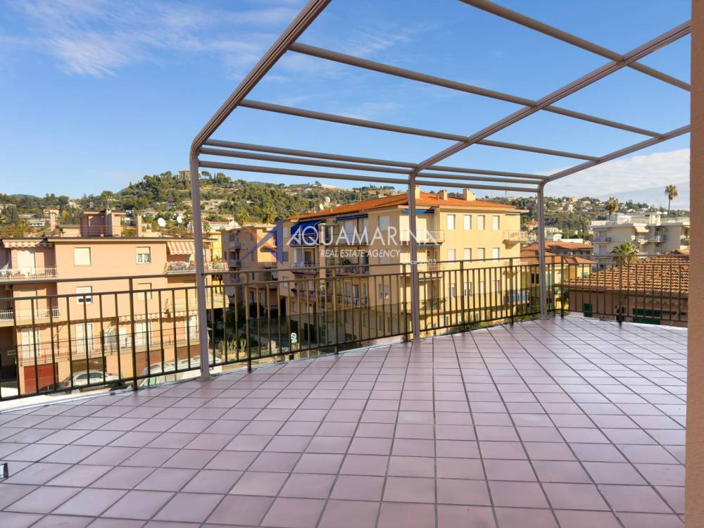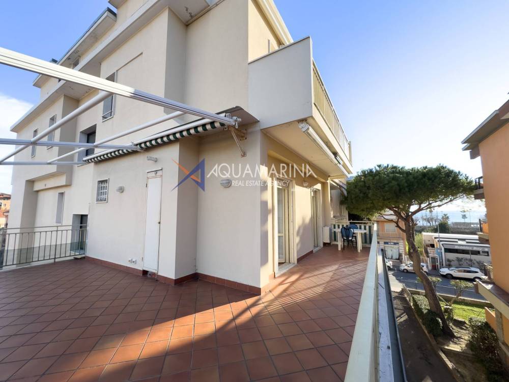 Questa proprietà è arricchita da un'ampia terrazza di circa 50 mq, esposta a nord-ovest, che offre un gradevole scorcio mare, ideale per godere di momenti di relax all'aperto.