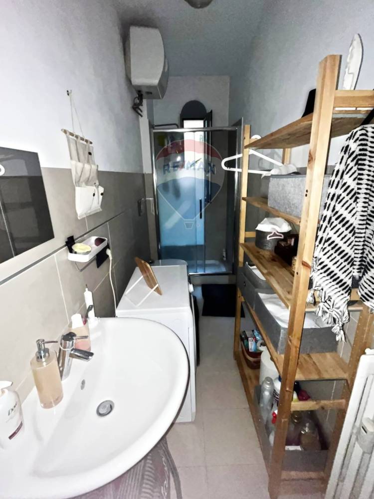Bagno finestrato con aerazione naturale e un ripostiglio, che permette di ottimizzare ulteriormente gli spazi.