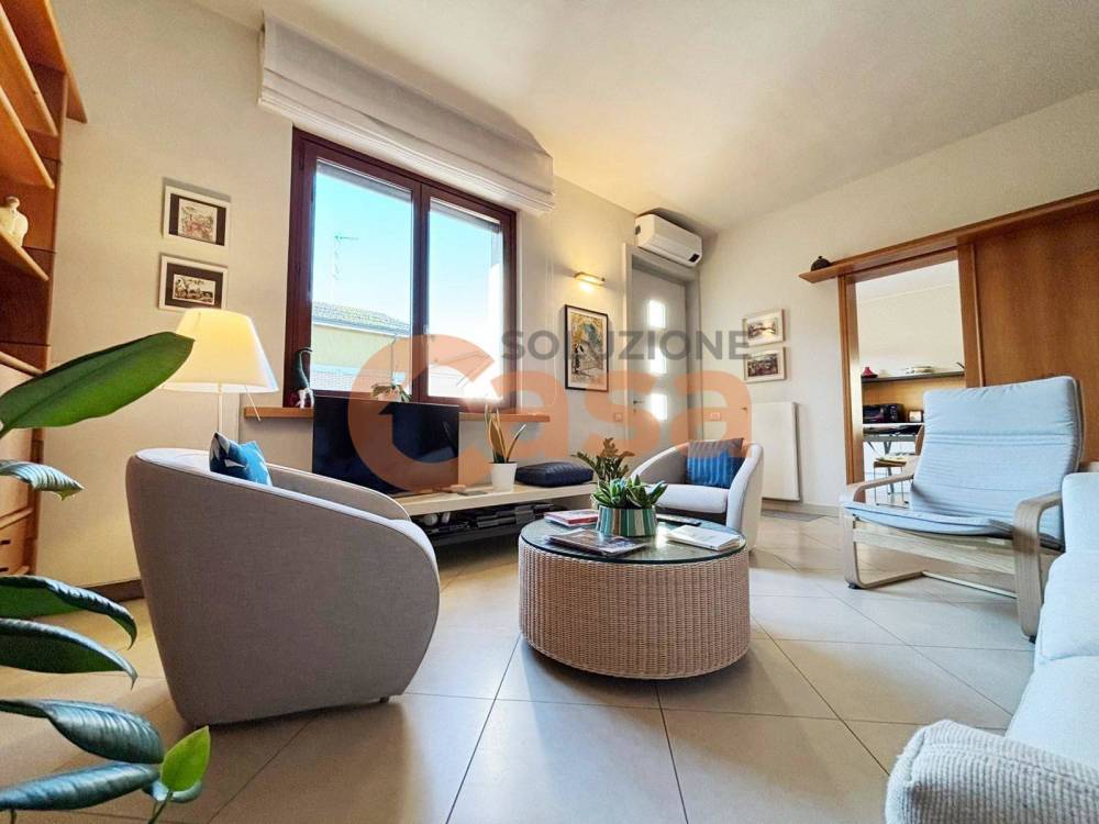Recentemente ristrutturata e attualmente composta da ingresso, ampio soggiorno, cucina abitabile, disimpegno, due camere matrimoniali e bagno finestrato, e al piano terra taverna, lavanderia, bagno e cantina collegati a garage doppio con portone sezionale.