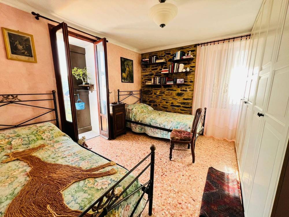 Al pian terreno l'immobile è composto da ingresso su disimpegno, cucina con camino funzionante ed ampio soggiorno, al piano superiore la zona notte è composta da un bagno finestrato e due camere da letto matrimoniali aventi sfogo su balcone con splendida vista sulla vallata e sul mare.