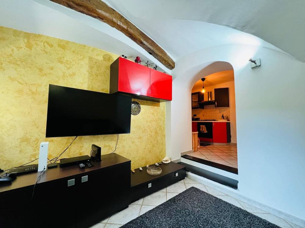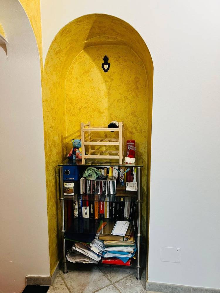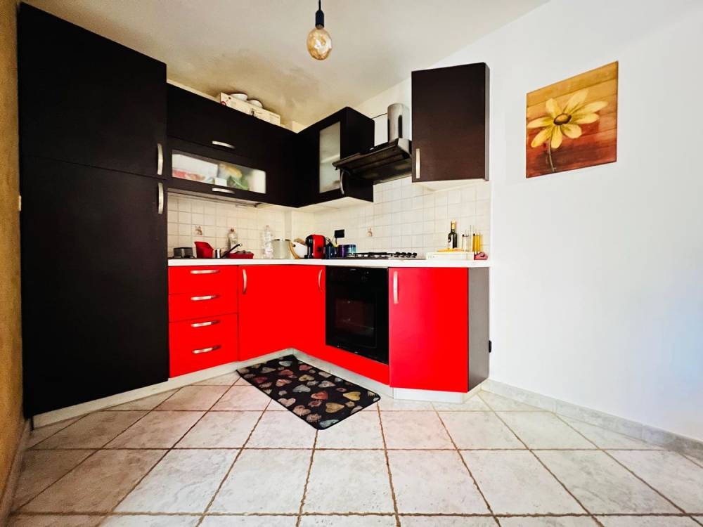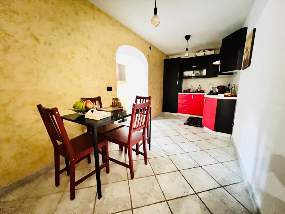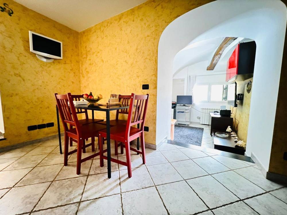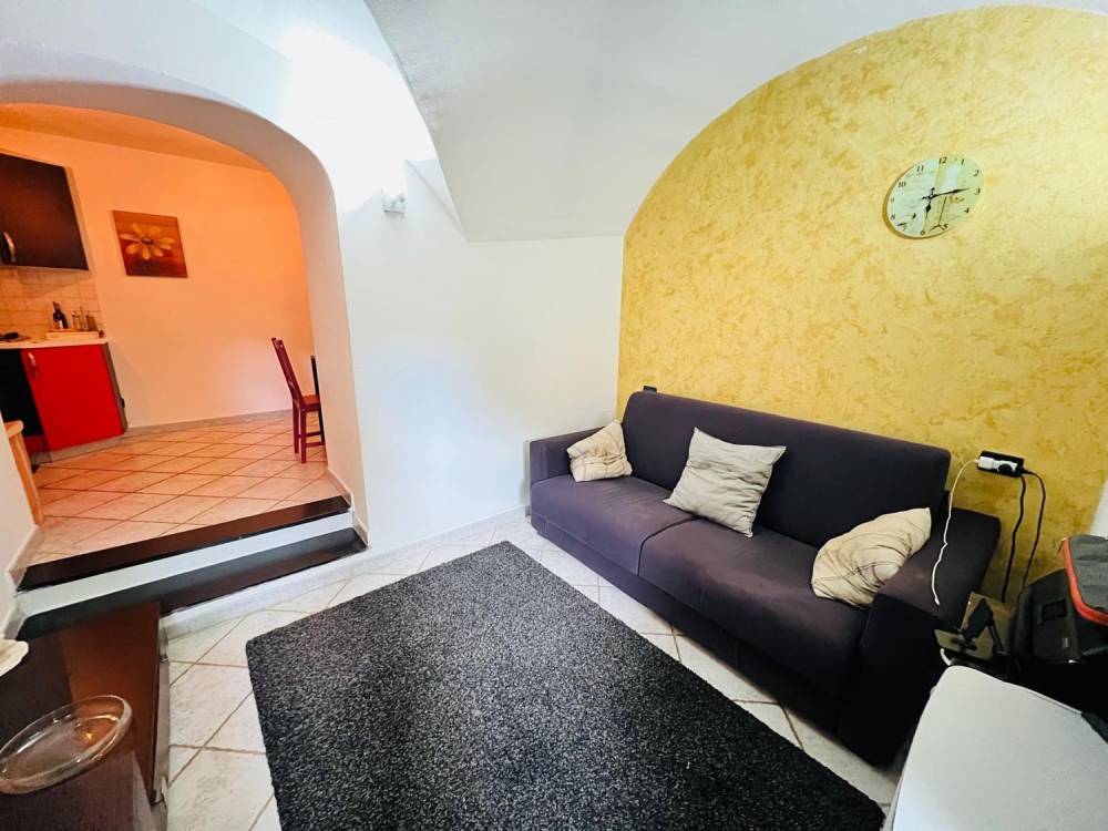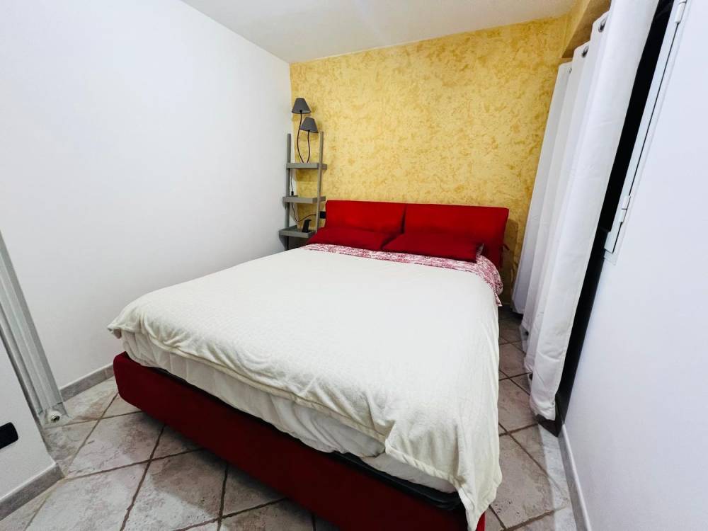 L'appartamento è composto da ingresso su disimpegno, camera da letto matrimoniale, bagno con box doccia, cucina abitabile, soggiorno e piccola corte esterna.