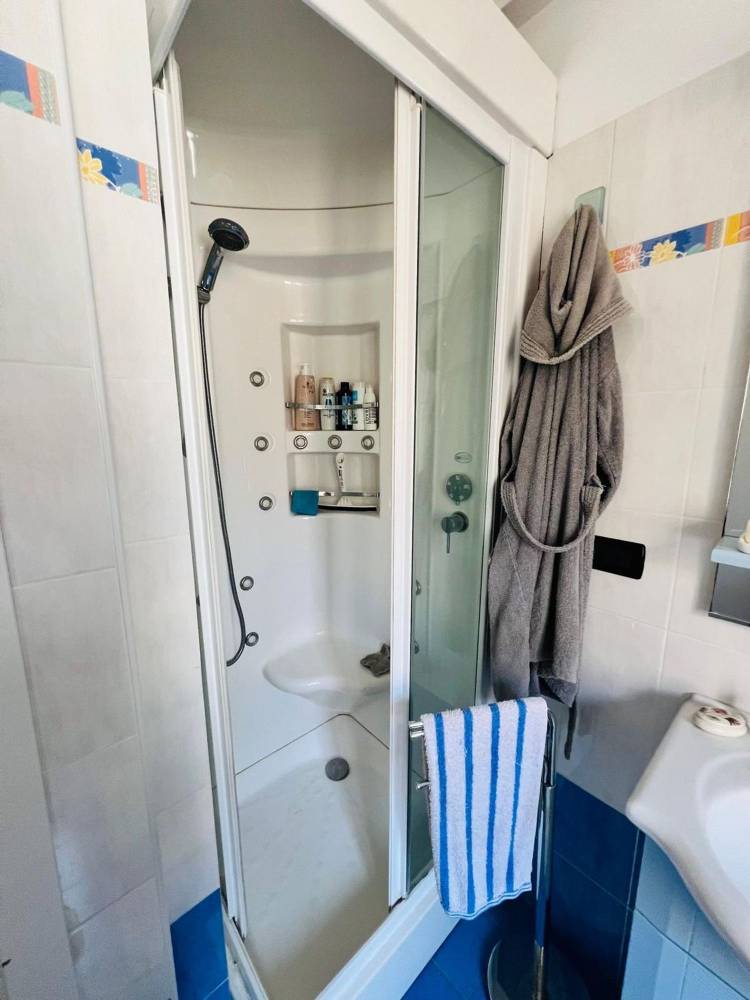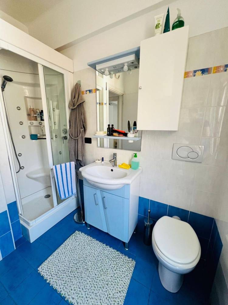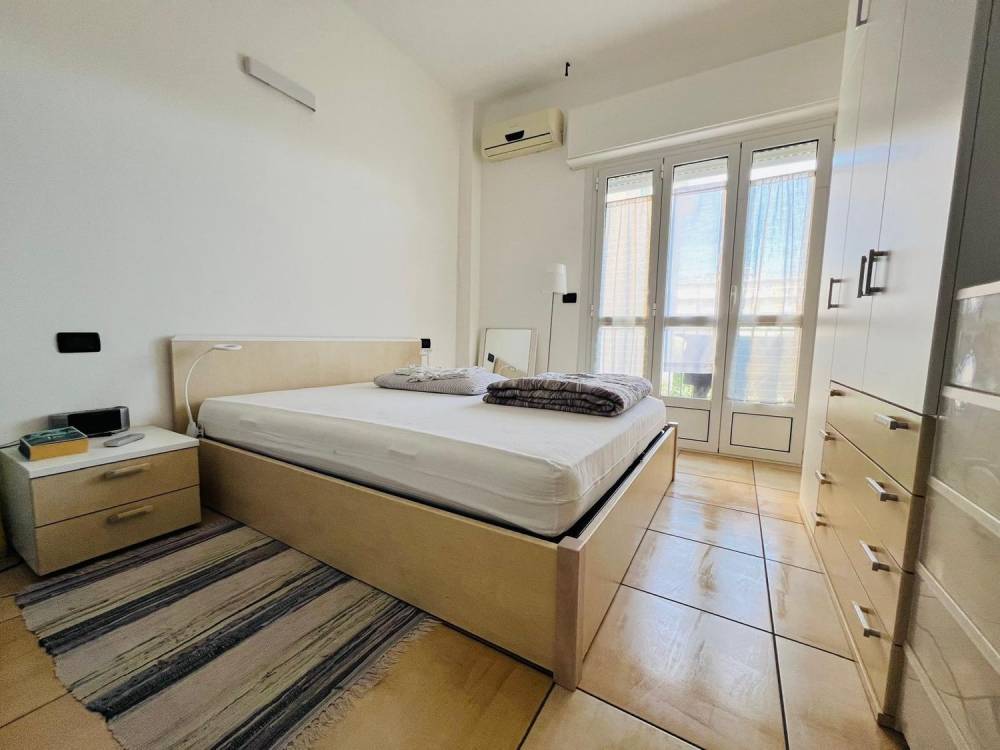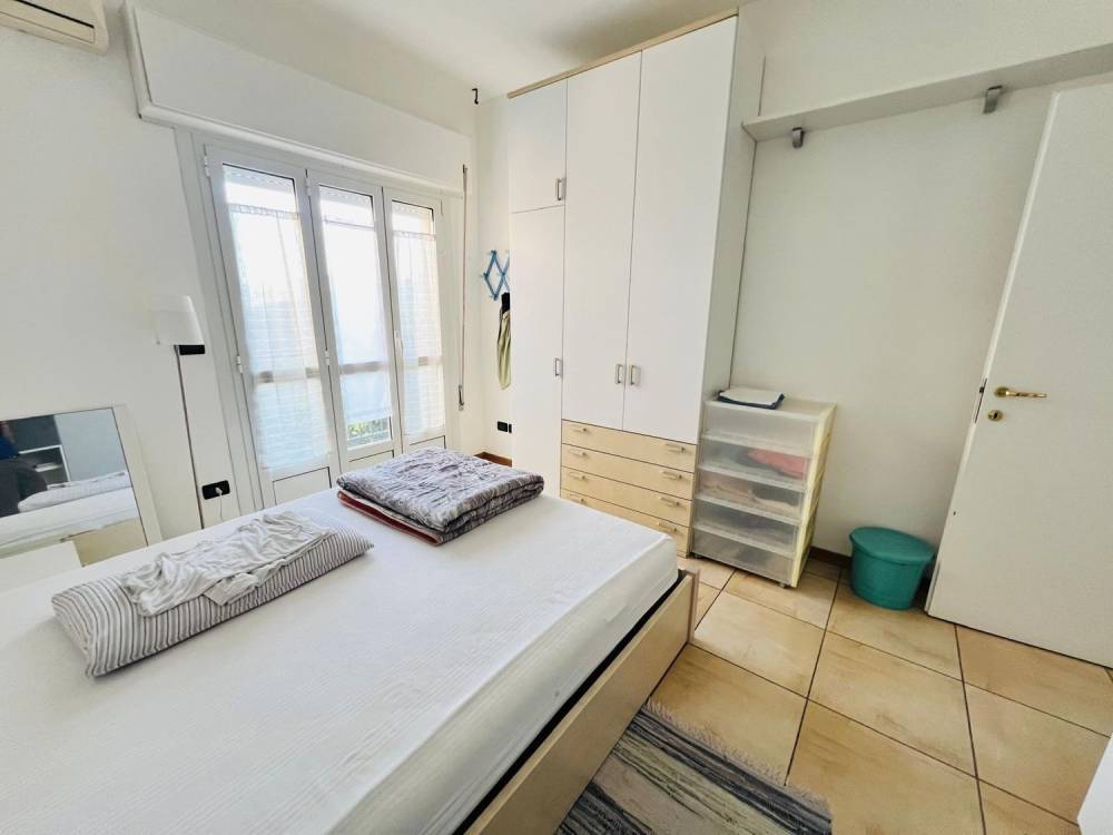 La camera da letto matrimoniale offre ampio spazio per i tuoi effetti personali. Il bagno finestrato, completo di box doccia idromassaggio, rappresenta un angolo di relax dopo una giornata trascorsa in spiaggia. Non perdere l'occasione di goderti la grande balconata con scorcio di vista mare, un luogo ideale per sorseggiare un drink al tramonto.