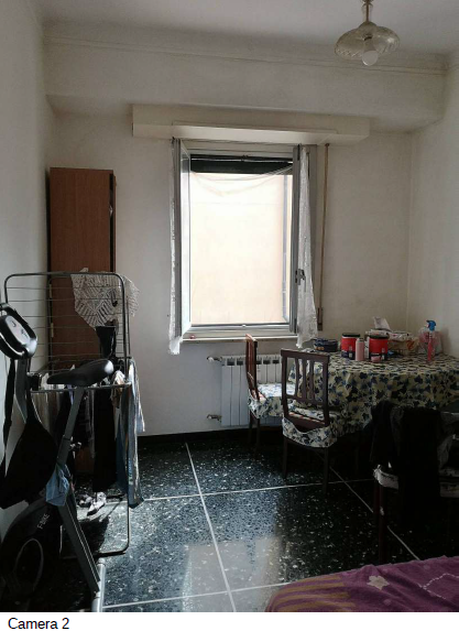 Piena proprietà per quota 1/1 di appartamento ubicato a Genova (GE), in via Molteni civico 7, interno 7, piano terzo con ascensore, vani 6,5, della superficie lorda catastale di 113 mq, costituito da ingresso affacciato su cavedio, quattro ampie camere, cucina abitabile, un bagno, un piccolo ripostiglio e due poggioli.