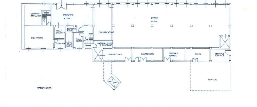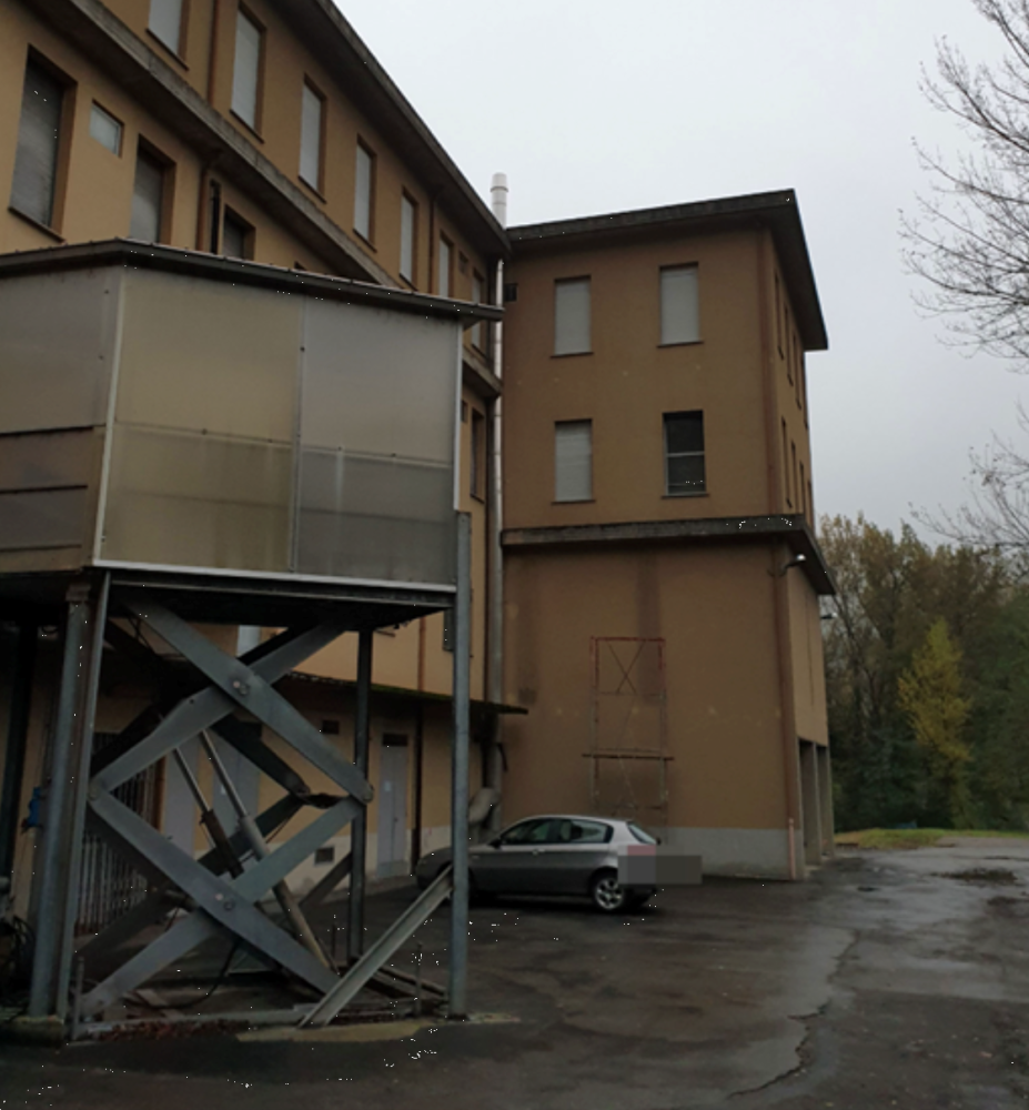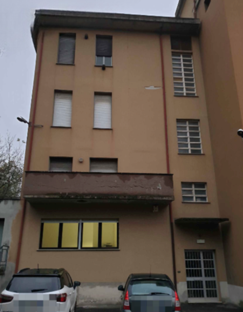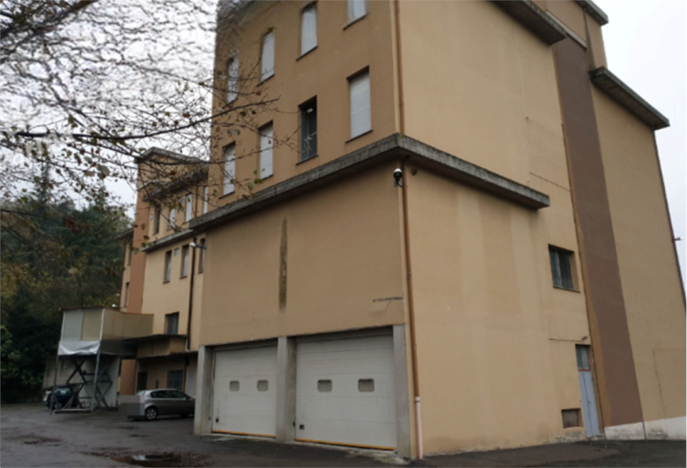 Trattasi di uan struttura da terra a tetto, elevato di quattro piani fuori terra, in parte adibito a salumificio, lavorazione e stagionatura dei prosciutti di mq. 2661 e ad uffici di mq. 209, ed in parte adibito a civile abitazione al piano secondo ammezzato di mq. 113 e 6 vani con un soggiorno, due camere, una cucina, un bagno e una terrazza.
