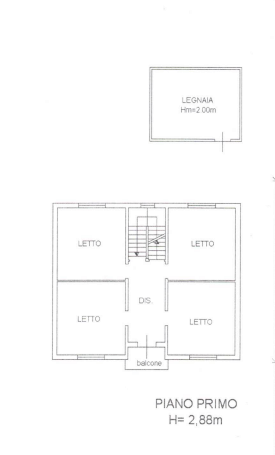 L'immobile è composto al piano terra da ingresso, soggiorno, cucina, una camera da letto e bagno; al primo piano tre camere da letto, bagno, ripostiglio e balcone, oltre a sottotetto di circa 90 mq accessibile da scala interna. Completano la proprietà un portico di circa 22 mq, autorimessa e deposito di circa 26 mq, terrazzo di circa 52 mq, balcone di 2,5 mq e terreno circostante di circa 308 mq.
