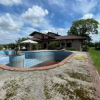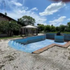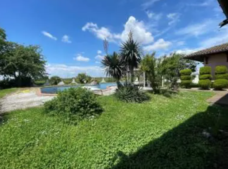 Fa parte della struttura un'autorimessa di 23 mq posta al piano terra, centrale termica, piscina esterna con area circostante piastrellata e terreno seminativo di pertinenza di mq. 3.240.