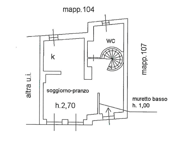 Trattasi di una casa composta da piano terra con accesso diretto da cortile comune su ingresso/disimpegno, soggiorno con cucina, servizio igienico; al piano primo troviamo ballatoio, camera da letto matrimoniale, camera da letto singola, ripostiglio e bagno padronale.