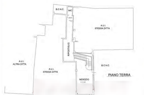 L'immobile è disposto su due piani (terra e primo) con ingresso direttamente da Piazza Umberto I, è composto al piano terra da un vano adibito a locale di vendita, una zona secondaria adibita a ripostiglio; al primo piano un'ampia zona ora adibita a magazzino e dotata di vano servizi.