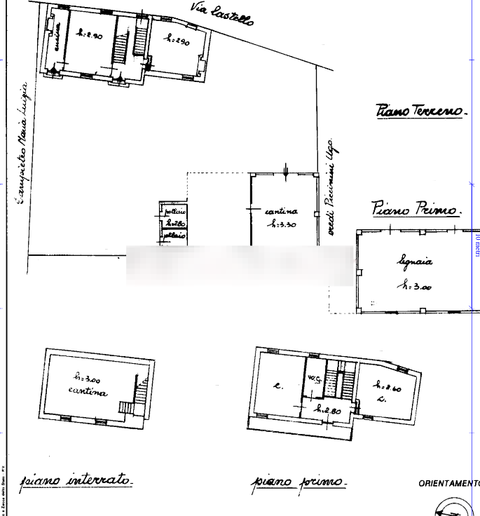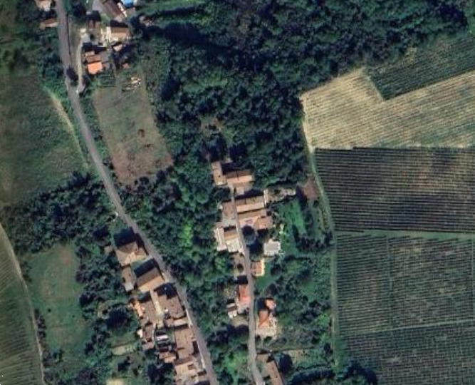 Composta da locale cantina al piano semin-terrato, da ingresso diretto nel soggiorno con angolo cottura, servizio in fase di completamento, disimpegno, vano scala ed un locale di sgombero al piano terra, da camera, bagno, balcone, disimpegno e locale di sgombero al piano primo, oltre a dei rustici in corpo staccato, in precarie condi-zioni strutturali, adibiti a pollaio, una cantina a piano terreno con sovrastante legnaia al piano primo e box per auto al piano terreno, con circostante piccola porzione di sedime pertinenziale adibita a cortile e adiacenti tre appezzamenti di terreno di 611 mq.
