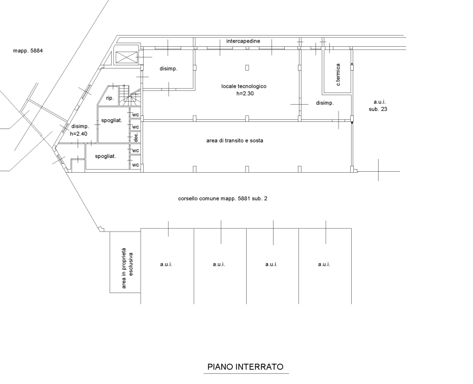 Il collegamento con il piano interrato avviene tramite una scala interna ed è presente da un blocco spogliatoi con servizi igienici divisi per sesso.