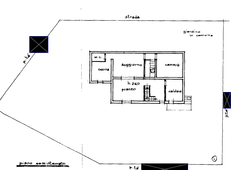 scala, piccolo disimpegno zona bagno-cucina e locale caldaia.