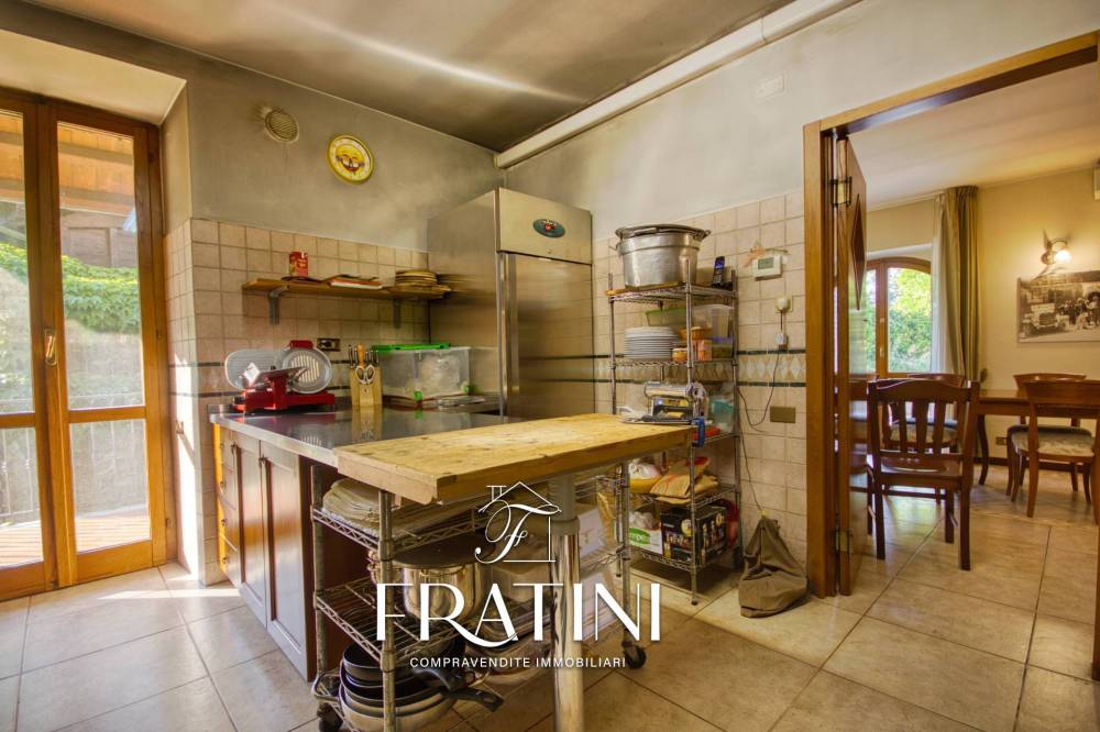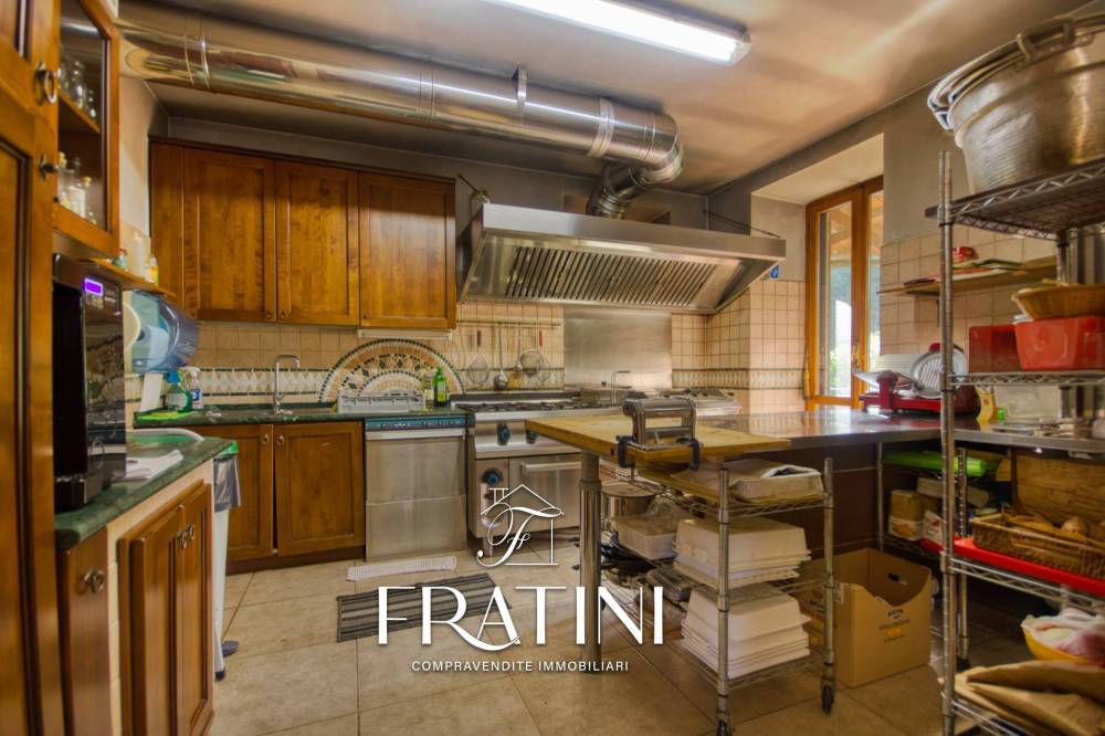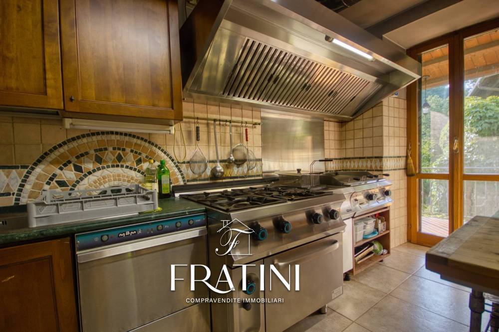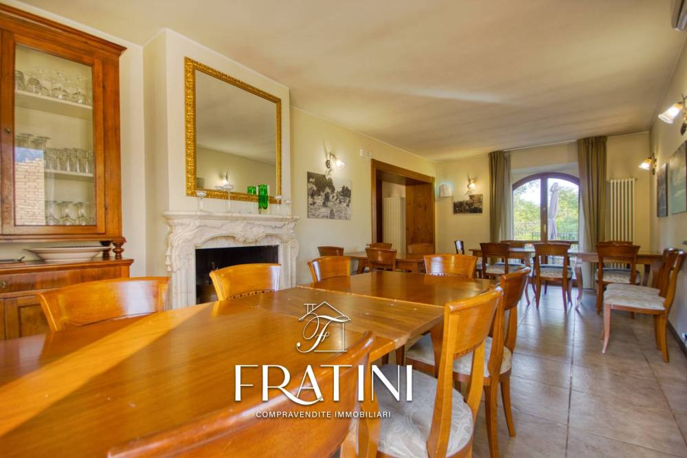 Al piano terra si trovano una zona reception accogliente, due ampie sale da pranzo la principale con un elegante camino in marmo, la seconda dotata di camino e forno a legna e una cucina industriale completamente attrezzata, perfetta per la ristorazione professionale.