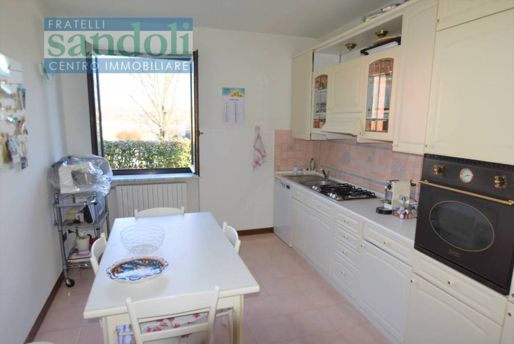 L'alloggio con ingresso indipendente è posto su al piano rialzato ed è composto da un ampio salone caratterizzato da un accogliente camino a doppio corpo, cucina abitabile e bagno con doccia; attraverso il corridoio si accede alla zona notte, la quale si sviluppa con una camera da letto padronale e bagno privato con vasca idromassaggio ed altre due camere ampie.