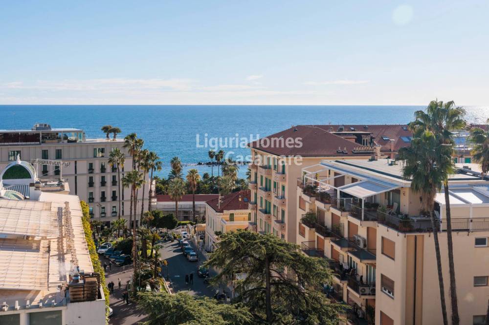 Elegante e ampio appartamento sotto attico in vendita a Sanremo, con terrazzo vista mare e garage privato, a pochi passi dal Casinò.