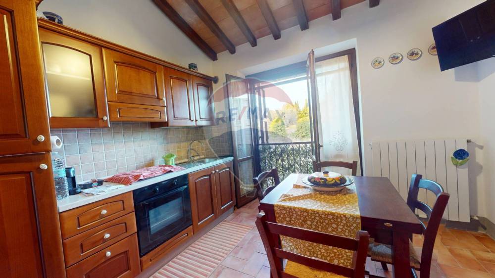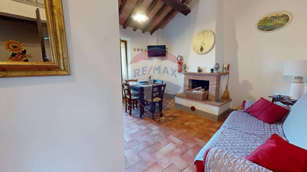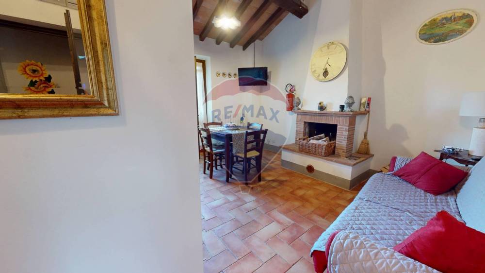 Lappartamento colpisce per il suo stile tipicamente umbro: travi in legno a vista, pianelle originali, pavimenti in cotto e un bellissimo caminetto che rende lambiente caldo, accogliente e perfetto per creare unatmosfera unica nelle serate invernali.