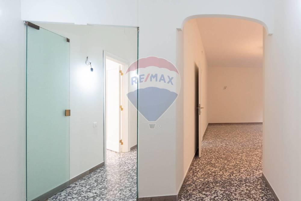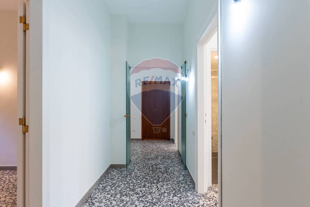 Lappartamento, dotato di un ingresso principale e di un secondo ingresso di servizio, risulta così composto: un ampio ingresso, con armadio a muro, che consente di accedere direttamente al salone doppio, che affaccia sul giardino condominiale, nonché al corridoio a servizio delle 2 camere da letto principali, ciascuna dotata di bagno; il vano di ingresso disimpegna anche il grande soggiorno con angolo cottura, al quale può accedersi direttamente dallingresso di servizio, che porta ad una terza camera da letto, sempre con bagno diretto ed al fondamentale locale lavanderia.