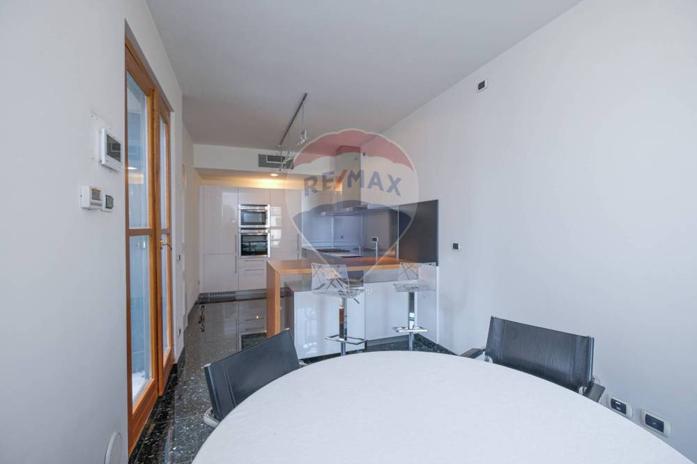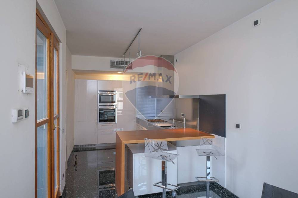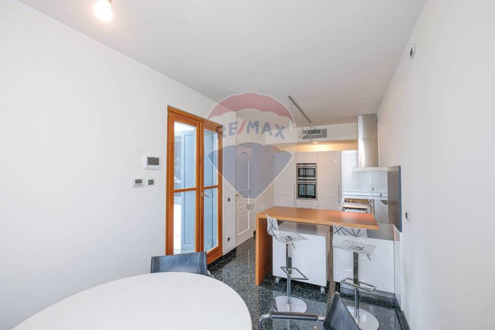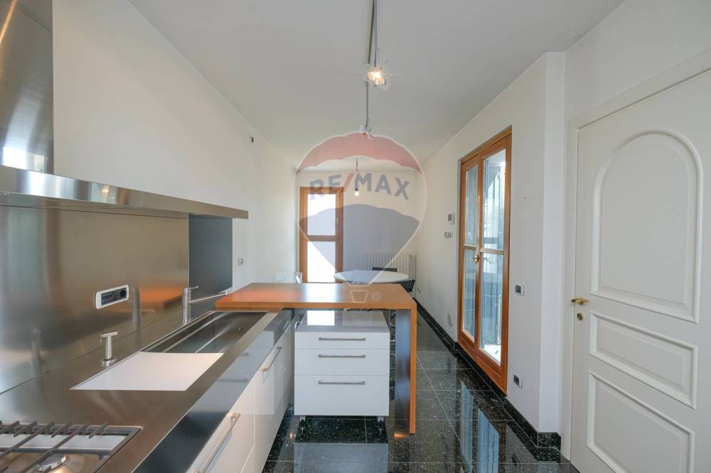 La cucina, recentemente arredata con gusto e funzionalità, dispone di una zona pranzo e si apre anch'essa sul balcone, offrendo un piacevole spazio per gustare i pasti all'aperto.