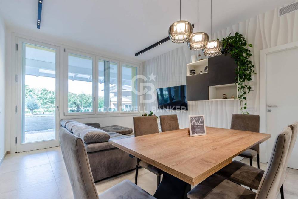 In zona residenziale verde e tranquilla, adiacente il centro del paese, presentiamo in vendita un appartamento di nuova costruzione, al piano terra con giardino privato di 133 metri quadri, di una piccola palazzina a risparmio energetico con pannelli fotovoltaici, in classe A4, edificate con le più innovative tecniche costruttive, internamente composto da: ingresso, soggiorno con cucina a vista e loggia, disimpegno notte, ripostiglio, due camere da letto, due bagni, e accessori un garage e un posto auto. Capitolato completo di ogni finitura disponibile in agenzia.