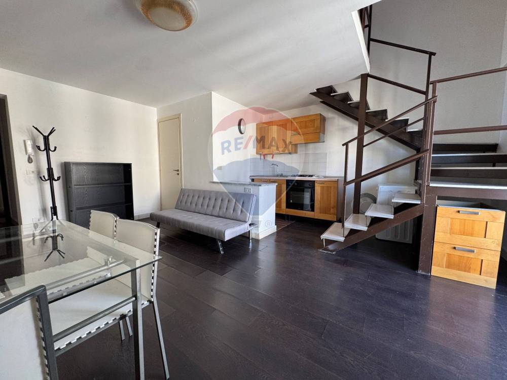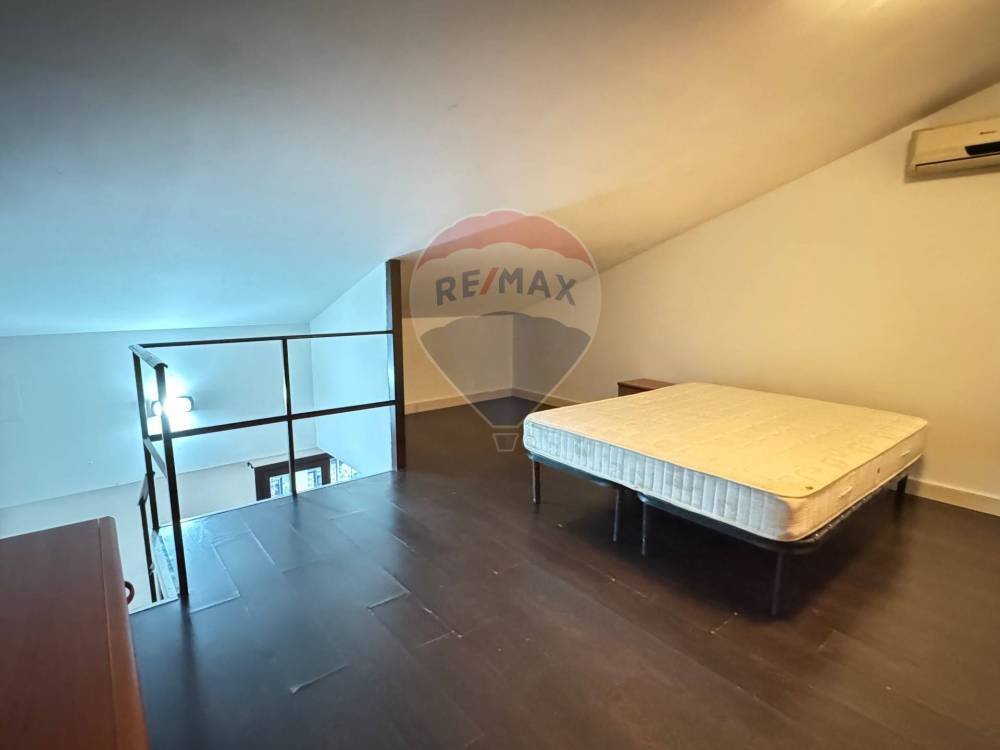 Una comoda scala interna conduce al piano superiore, completamente dedicato alla zona notte. Qui troviamo una camera matrimoniale mansardata, accogliente e ben organizzata, con armadio, scrivania e unatmosfera raccolta e silenziosa che la rende perfetta per chi ha bisogno di concentrazione o desidera uno spazio più intimo.
