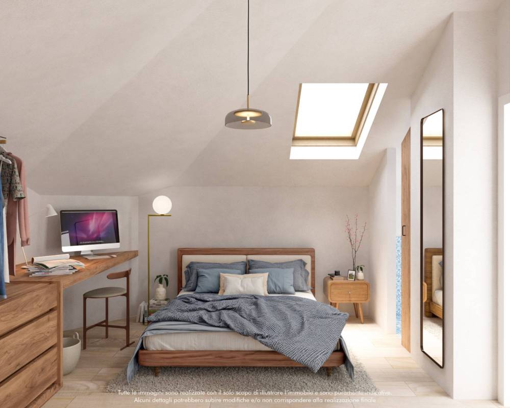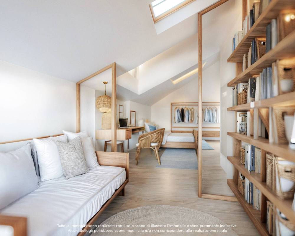 L'appartamento in questione, situato al piano secondo e terzo, è stato progettato con grande attenzione ai dettagli: