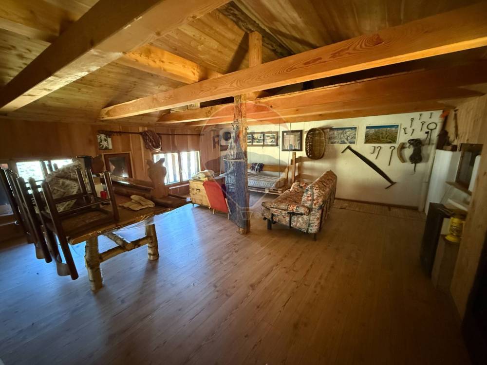 Gli infissi e le finestre, anch'essi in legno, conferiscono alla baita un'atmosfera calda e rustica, perfetta per chi cerca una fuga dalla vita frenetica della città, desidera rilassarsi e godere della vista mozzafiato sulle montagne circostanti. L'interno della baita è parzialmente arredato.