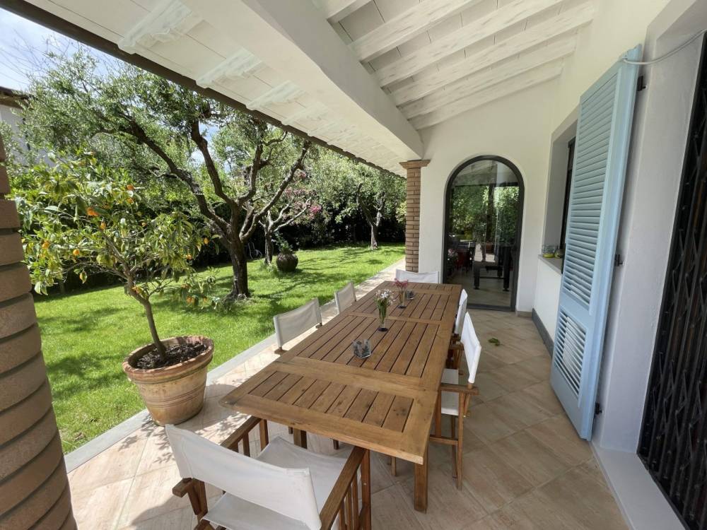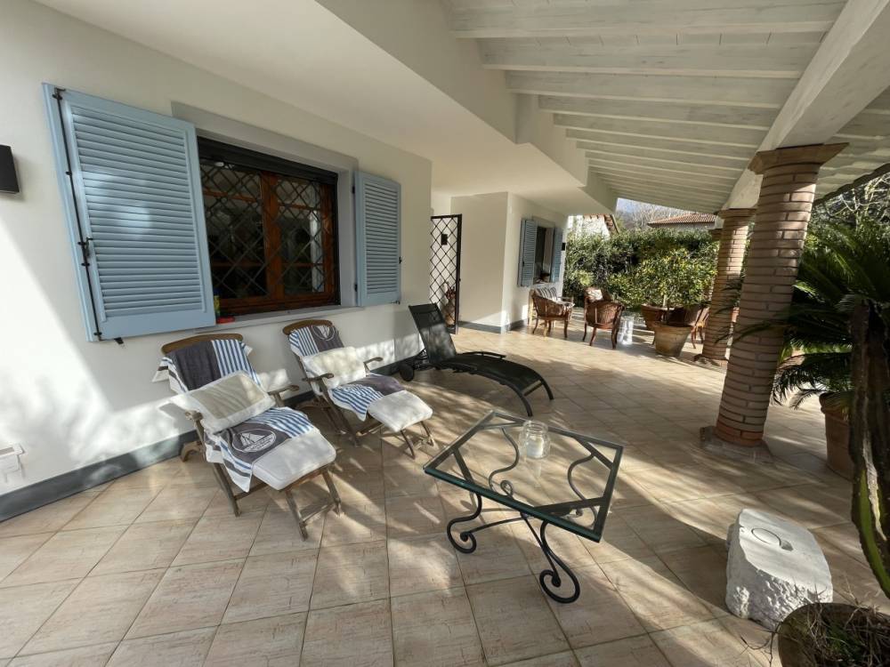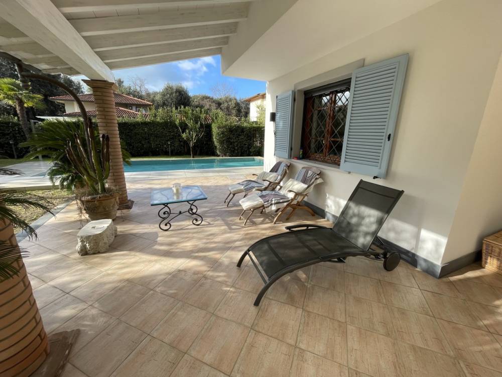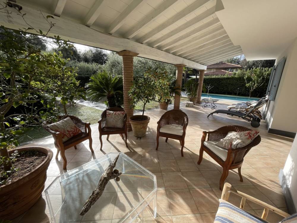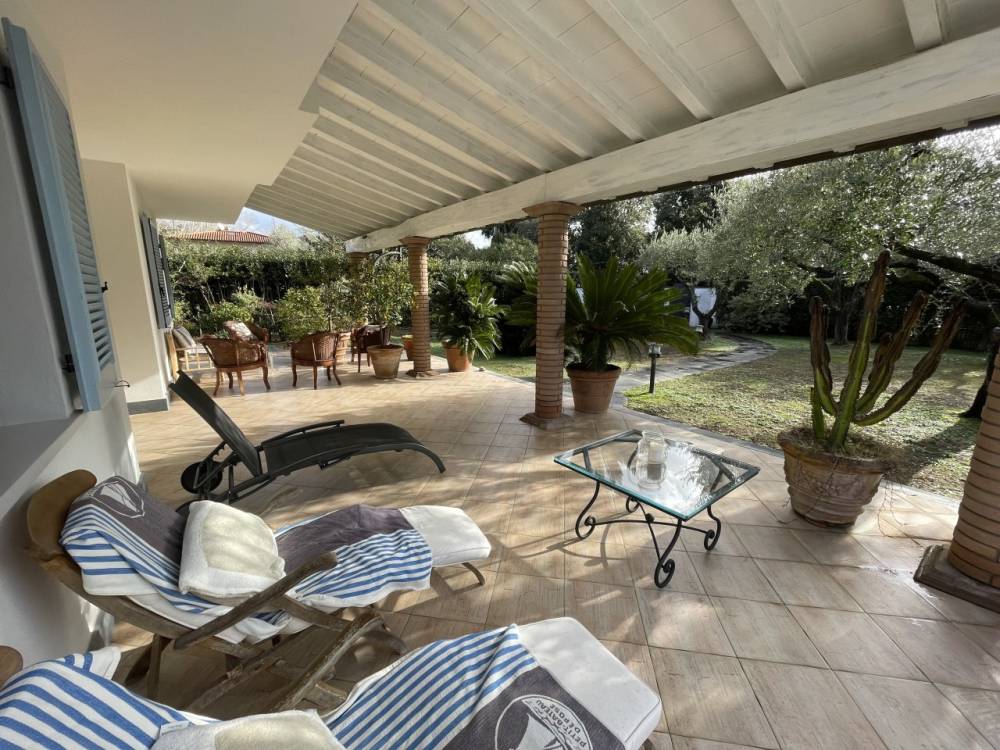 Marina di Pietrasanta – in affitto estivo villa singola con piscina situata in ottimo contesto residenziale e con assoluta privacy, a 760 m dal mare, si compone al piano terra da soggiorno-pranzo, cucina abitabile, salottto, 1 camera , 1 bagno; al piano primo da 4 camere matrimoniali, 3 bagni. ampia veranda attrezzata, posto auto, aria condizionata, colonnina ricaria auto, Piscina m 9,5x4,5x1,5 . A corredo giardino di 1.600mq . Rif.1233