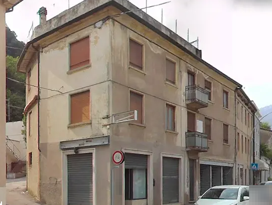 L'unità è composta da cinque abitazioni, due negozi e un posto auto coperto, compresi in un complesso residenziale/commerciale di tre piani fuori terra di vecchia costruzione, in parte ristrutturato alla fine degli anni '70 e per la porzione a negozio negli anni 90, servito da due scale condominiali con accesso diretto dalla strada pubblica.