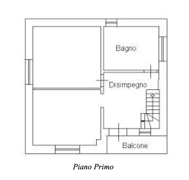 L'abitazione si sviluppa su due livelli, il piano terra suddiviso in cucina e soggiorno, due stanze, antibagno e bagno; percorrendo la scala a giorno che troviamo entrando sulla destra, si accede al piano primo, suddiviso in un bagno, due camere da letto, un ampio disimpegno con accesso al balcone.