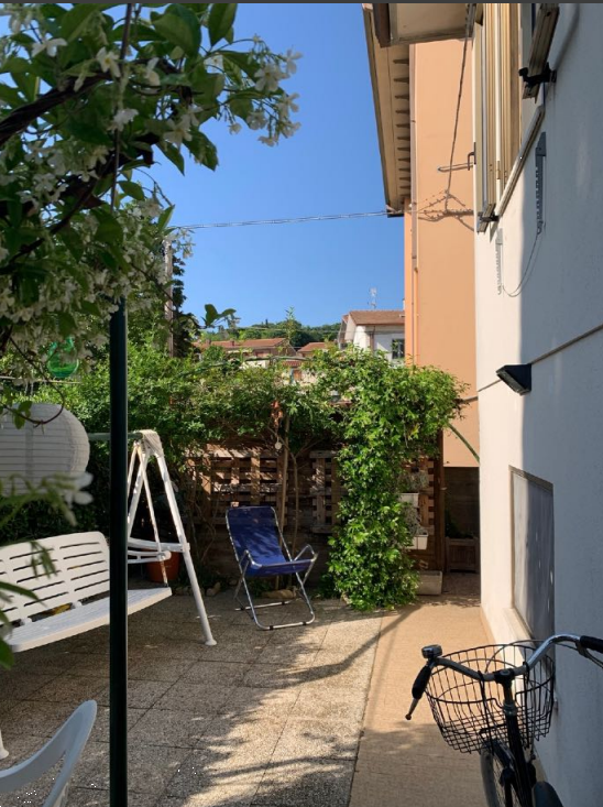 Villetta a schiera a Gabicce Mare (PU) in Via Enrico Toti. Al piano seminterrato si trovano un ampio garage servito da w.c., accessibile sia dall'esterno sia dall'interno tramite scala di collegamento ai piani superiori, oltre a un ulteriore w.c. con porta-finestra che conduce al giardino, un disimpegno e una corte esclusiva che circonda l'abitazione su tre lati, dotata di scala esterna per l'accesso al piano terra rialzato e rampa carrabile verso il garage. Il piano terra rialzato ospita l'ingresso con soggiorno, affacciato su un balcone sul fronte dell'edificio, la cucina con uscita su un balcone laterale, un ripostiglio/dispensa, un w.c. di servizio con antibagno e un disimpegno con scala che collega ai piani superiori. Al primo piano si trovano una camera singola e un vano guardaroba, entrambe con balcone, una camera matrimoniale con balcone laterale, un bagno finestrato con doccia e un disimpegno con scala interna. Il piano secondo è occupato da un unico locale sottotetto, con altezze variabili, finestrature e lucernaio, oltre a intercapedini nelle parti più basse. Soluzione ideale per chi cerca una casa ampia, articolata su più livelli e dotata di comodi spazi esterni.