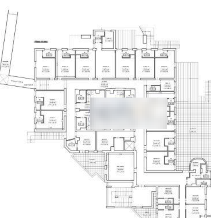 corpo di fabbrica secondario sviluppato su un livello parzialmente soppalcato destinato a deposito e servizi, un corpo di fabbrica secondario sviluppato al solo livello terra destinato a camere, oltre che aree scoperte pertinenziali, locali