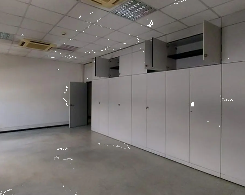 Ufficio con archivio al piano secondo facente parte di un complesso commerciale situato a Cento (FE) in via Commercio, composto internamente da ingresso, tredici vani adibiti ad uffici, vano area tecnica, tre vani archivio, disimpegno, sette antibagni con rispettivi bagni.
