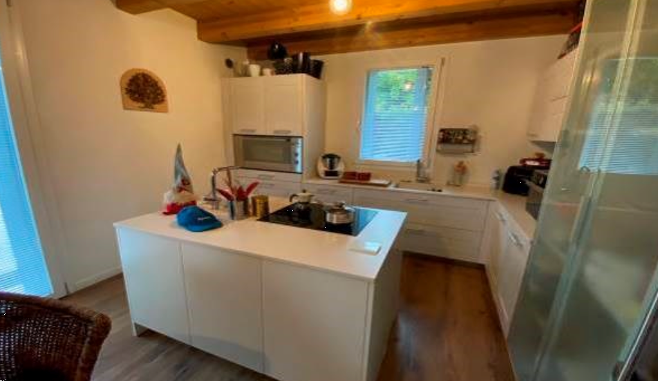 Porzione di testa di villetta a schiera ai piani interrato, terra e primo con unità in corso di costruzione al piano interrato (autorimessa), piscina e scoperto di pertinenza situata in via Masieri nel Comune di Trissino (VI). L'abitazione è composta al piano interrato da locali sgombero, ripostiglio e cantina; al piano terra da un ingresso, una cucina, soggiorno, anti-bagno, bagno, un portico a sud-est di circa mq 32 ed uno scoperto di pertinenza di complessivi circa mq 1.761; al piano primo da tre camere, due bagni, cabina armadio ed un un poggiolo sul lato sud-est per circa mq 11. L'autorimessa sita al piano interrato, attualmente in corso di costruzione, adiacente e comunicante con l'abitazione, presenta forma trapezoidale irregolare e sviluppa una superficie commerciale di circa mq 79 con accesso carraio dai beni comuni.