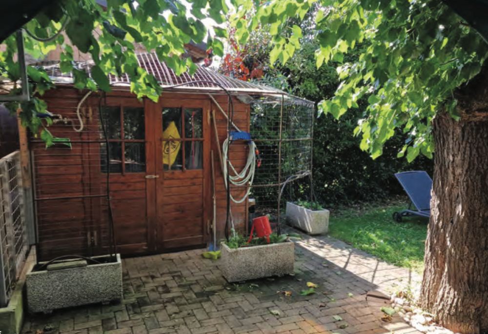 Appartamento al piano terra con annessa corte esclusiva di 443 metri quadri catastali autorimessa al piano primo sottostrada facenti parte di un fabbricato in condominio situato in Comune di Trevignano (TV), frazione Falzé in via Gioacchino Rossini. Abitazione composta al piano terra da un ingresso, una cucina-soggiorno-sala da pranzo, corridoio, due camere da letto e due bagni; al piano primo sottostrada da garage, cantina e magazzino.